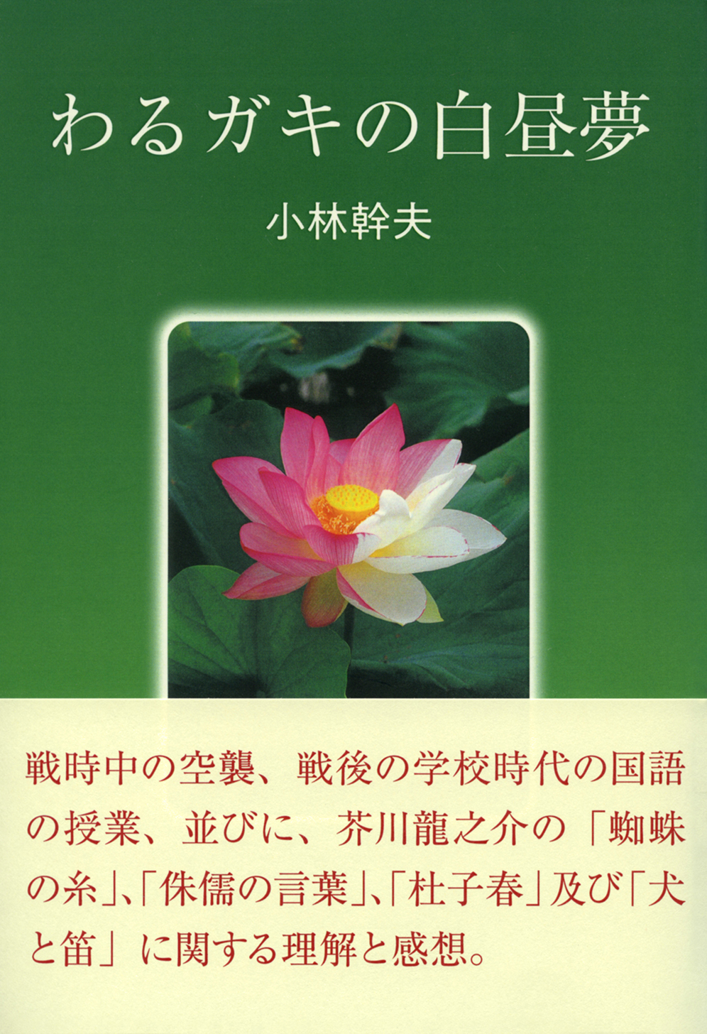 「わるガキ」であった著者が第二次世界大戦中、神奈川県で空襲を受けた時の生活及び高校一年までの学校での国語の授業についてのエピソード、並びに、芥川龍之介の作品「蜘蛛の糸」、「侏儒の言葉」、「杜子春」及び「犬の笛」に関して、著者が平均寿命を超えてから思い出した作品の「理解」と「感想」についての随想。