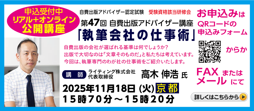 ①「自費出版アドバイザー講座」に名称変更いたします。