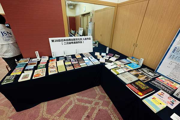 表彰式会場では、午後12時半から、午後1時半まで、日本自費出版文化賞の展示コーナーが中心です。今年の入選・入賞作品はもちろんのこと、過去の歴代大賞作品も展示されました。