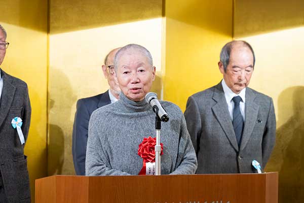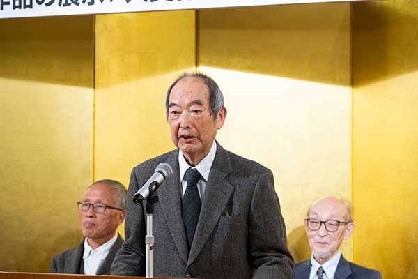 表彰では、最初に、岡本 泰会長が、この日出席した入選者の方々を3組に分けて代表者に表彰状をお渡ししました。