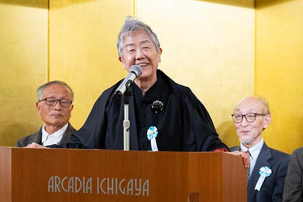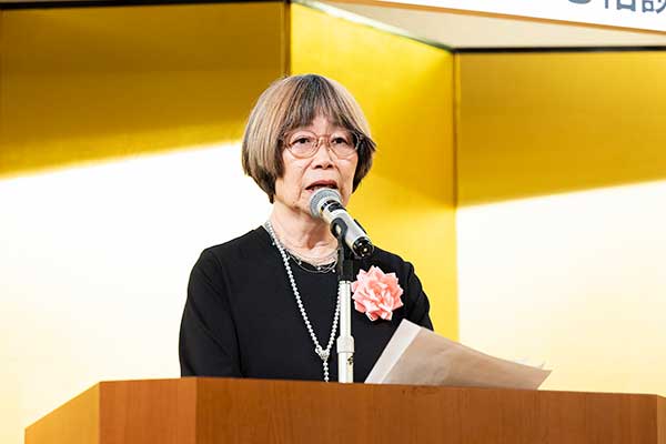 続いて入賞作品の表彰が行われました。特別賞は、コニカミノルタジャパン株式会社、リョービMHIグラフィックテクノロジー株式会社、ハイデルベルグ・ジャパン株式会社、株式会社大塚商会、株式会社ショーワ、ホリゾン・ジャパン株式会社、富士フイルムグラフィックソリューションズ株式会社、株式会社キングコーポレーション(シルバー特別賞)の各協賛会社から表彰状が送られました。部門賞は最終選考委員が表彰状を贈呈しました。また、新設の色川大吉賞は、鎌田 慧選考委員長から表彰状を贈呈され、色川先生と親交がありご協賛いただいている上野千鶴子様のあいさつが行なわれました。そして、大賞は、鎌田 慧選考委員長から表彰状が贈呈されました。