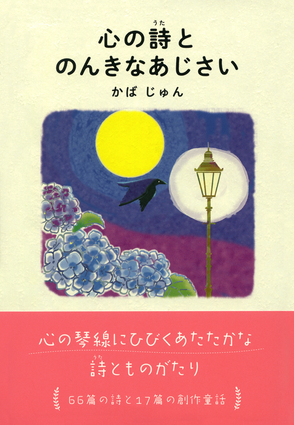表題の「心の詩とのんきなあじさい」は、詩と創作童話の2部作になっています。第1部の詩は新聞に投稿して採用された66篇で構成したものです。第2部の創作童話は2009年に一度自費出版したものですが案外評判が良かったので今回の詩集に追加しました。