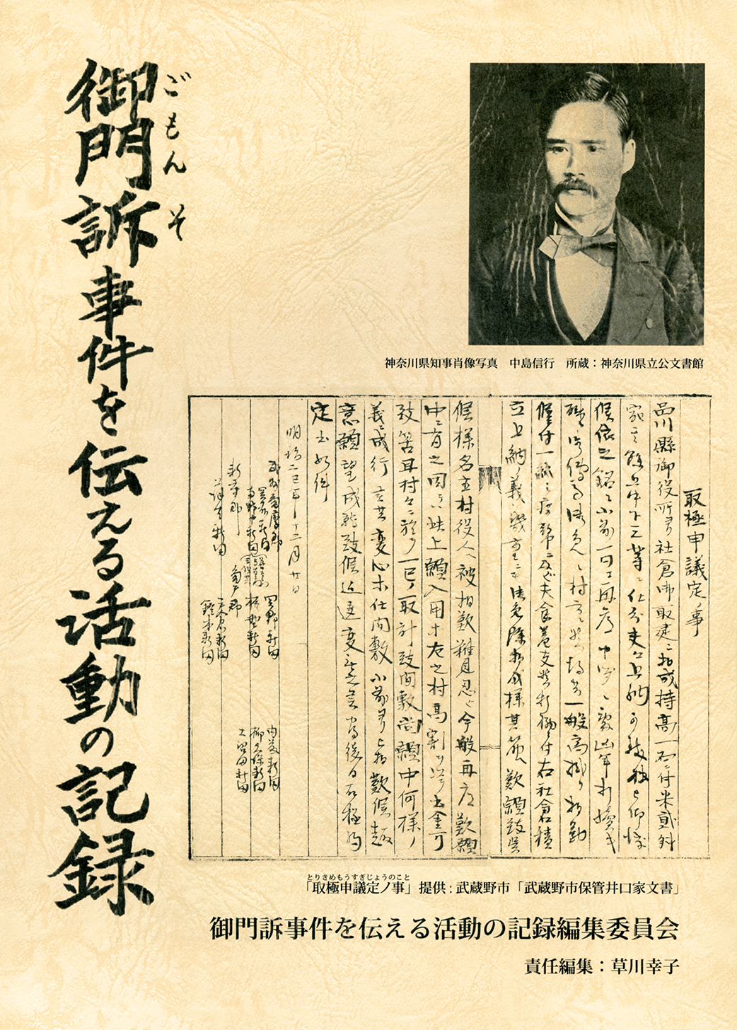 明治三年武蔵野新田の農民達が、県庁の門前で重税免除の歎願をし武力弾圧を受けた「御門訴事件」を解りやすく解説。その他事件に関する過去の地域活動を記録誌としてまとめた。また自由民権家中島信行が書いた事件の碑文の紹介及び自由民権運動との関係についても言及。獄死し犠牲となった農民達の顕彰への思いを込めた本。