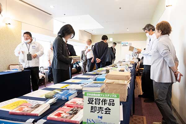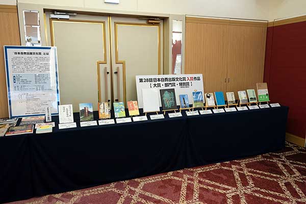 表彰式会場では、午後12時半から、午後1時半まで、日本自費出版文化賞の展示コーナーが中心です。今年の入選・入賞作品はもちろんのこと、過去の歴代大賞作品も展示されました。